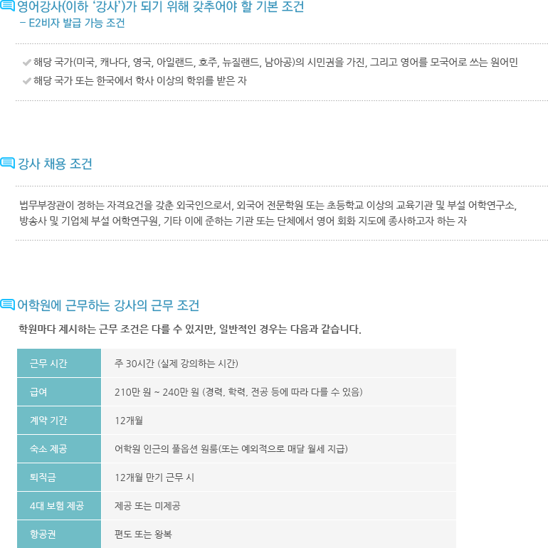 원어민 영어강사 자격조건